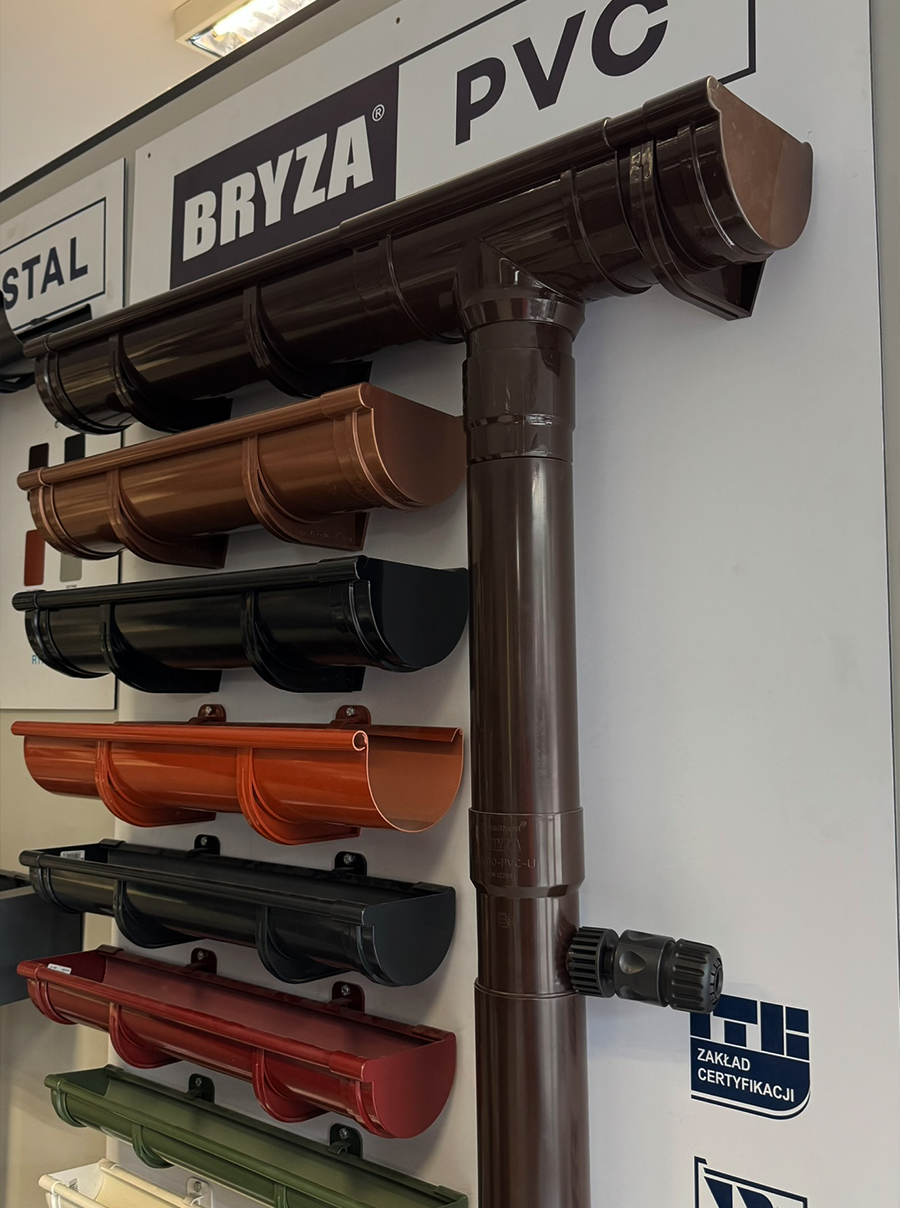 Systemy rynnowe z PVC to lekkie i łatwe w montażu rozwiązanie, odporne na korozję i działanie wilgoci. Charakteryzują się dobrą relacją ceny do jakości oraz dużą dostępnością kolorów.